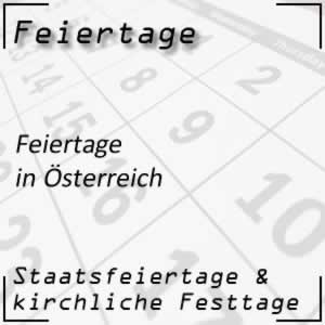 Nachstehend finden Sie die Jahresliste der Feiertage und Festtage in Österreich für das Jahr 2025. Die Liste umfasst die Staatsfeiertage wie den 1. Mai oder 26. Oktober genauso wie auch religiös motivierte Feiertage mit den Weihnachtstagen oder auch mit dem verlängerten Wochenende zu Ostern oder zu Pfingsten. Dazu gibt es regionale Tage, die in bestimmten Bundesländern eingeführt wurden und vor allem die Landespatrone betreffen. An diesen Tagen ist entsprechend schulfrei, wie St. Florian oder St. Leopold.