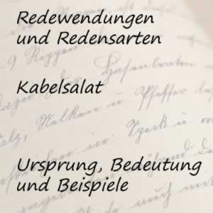 "Kabelsalat" ist eine Redensart, die im Zeitalter der Elektronik nicht lange auf sich hat warten lassen. Man findet den Kabelsalat immer dort vor, wo viele Geräte mit Strom zu verbinden sind und die Kabel sind unterschiedlich dick und lang und schwer in Ordnung zu bringen. Liegen sie kreuz und quer über dem Boden, dann spricht man gerne vom Kabelsalat.