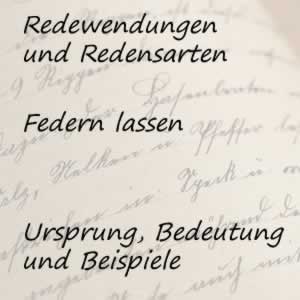 "Federn lassen" ist auch eine Redewendung, die man oft zu hören bekommt und die ihren Ursprung in der Tierwelt, genauer beim Vogelvieh hat. In diesem Fall wird darauf Bezug genommen, dass ein Vogel aus so mancher unangenehmen Situation wie einer Falle insofern wieder entfliehen kann, wenn er einen Teil seines Federkleides riskiert. Auch bei Streitereien untereinander können die Federn fliegen. Die Redewendung meint damit, dass man beim Federn lassen einen Verlust erleidet.