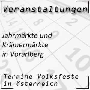 Im Bundesland Vorarlberg gibt es die Tradition der Jahrmärkte auch und es werden einige dieser Veranstaltungen angeboten. Zumeist gibt es sie wie ursprünglich im Mittelalter eingeführt einmal pro Jahr, wobei sie auch verschiedene Namen tragen können. Neben Jahrmarkt hat sich auch die Bezeichnung vom Krämermarkt durchgesetzt, auch Frühjahrsmarkt und Herbstmarkt sind bekannte Begriffe und Simonimarkt oder Kathreinmarkt gibt es ebenso.